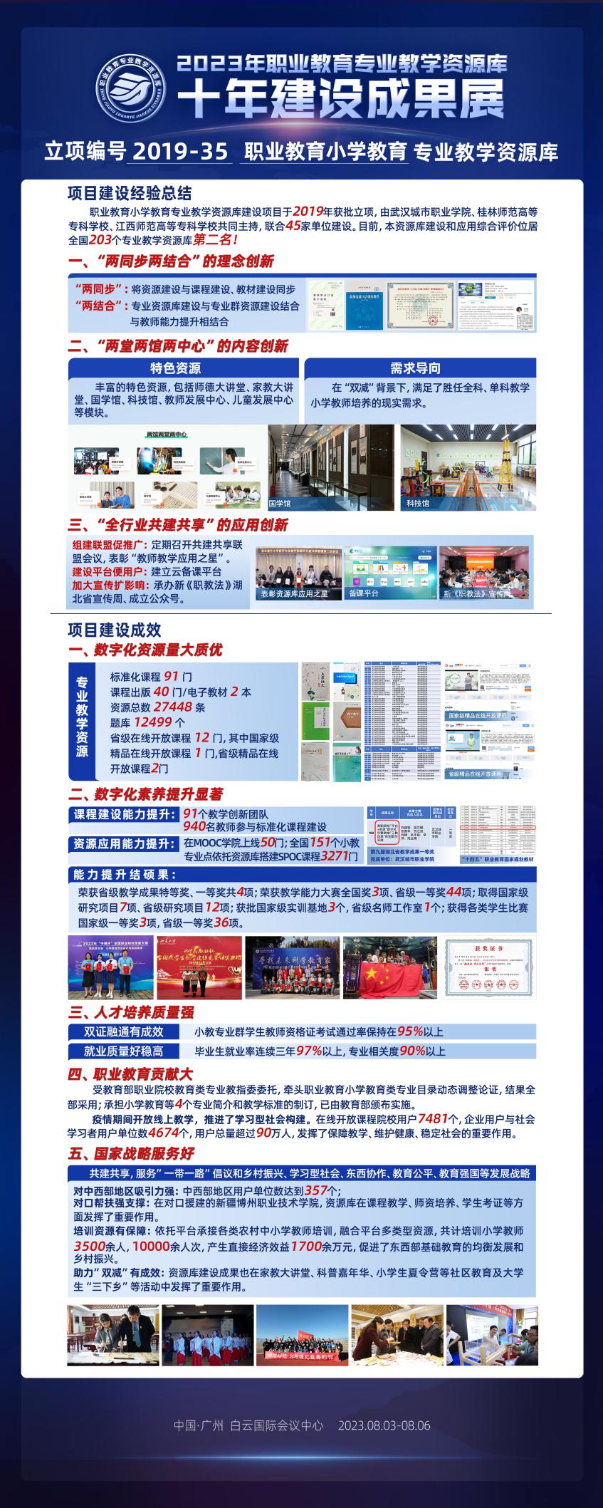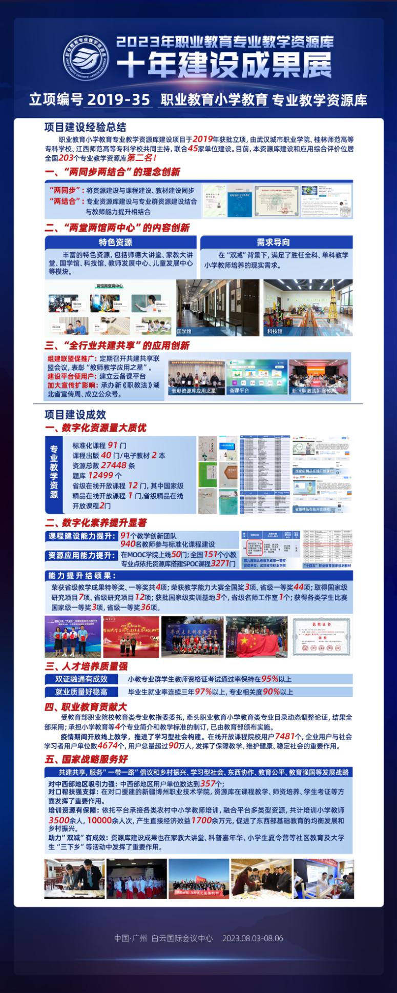 据了解,由高等教育出版社出版的《职业教育专业教学资源库十年建设与实践》新书同期向社会发布,会议还进行了2023年职业教育专业教学资源库十年建设成果展,公司主持的职业教育小学教育专业教学资源库成果参加了巡展。